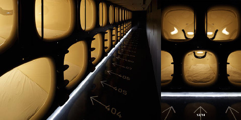 你可曾去过没有房间的旅馆吗?你可曾去过整个旅馆的颜色只有四种的旅馆吗?你可曾去过把客人塞进像卵囊一样的空间里而且最多睡9个小时的旅馆吗?
