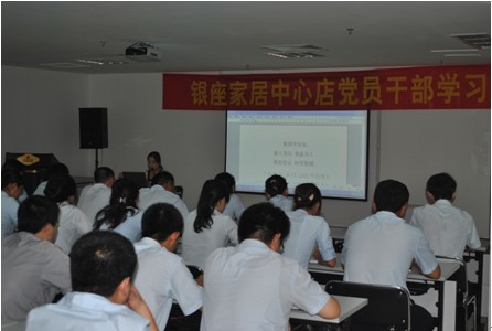 7月25日,中心店总经理王晓琳在培训教室主持召开了银座家居中心店党员干部座谈会,中心店全体党员16人,主管级以上干部21人,共37人参加了会议。会上集中学习了王仁泉总经理在集团半年总结会上的讲话以及季董事长对下半年工作的重要思路,并对中心店下一步的主要工作进行了安排部署。