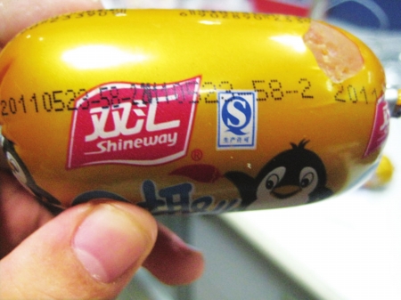 昨晚,谭先生带着购买的火腿肠和华西都市报记者见面。记者发现,3根已拆封的火腿肠和21根后来购买的火腿肠,都是今年5月生产,保质期为90天,生产厂家标识为双汇集团绵阳双汇食品有限责任公司,品牌为“双汇Q趣儿”。这些火腿肠离过期大约还有20多天的时间。