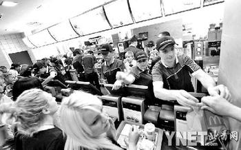7月20日,在波斯尼亚和黑塞哥维那首都萨拉热窝,人们在麦当劳快餐店点餐。波黑首家麦当劳餐厅当日正式开业。