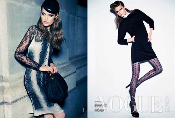 澳大利亚版Vogue九月时装大片由超模Katie Fogarty演绎。多样的蕾丝花色尤使此次大片的夜色主题妩媚异常。 (来源:凤凰网)