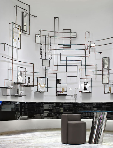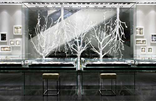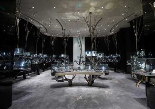 连卡佛Lane Crawford北京金融街购物中心旗舰店不锈钢树型组成的圆形珠宝柜台设计