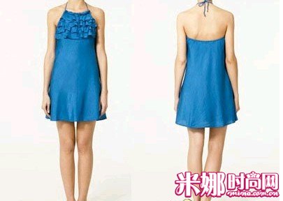 这款裙子上身为肚兜式的设计,前绑带,后露背,突出了肩部的性感,胸前层层荷叶花边,让裙子显得更为淑女,更迷人。