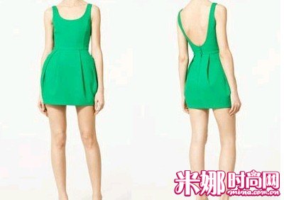 这款连衣裙的造型简洁优雅,上身大露背背心,性感迷人,下身是郁金香裙型,可爱别致,再加上亮绿色的流行色,整体感觉清爽而富有女人味。