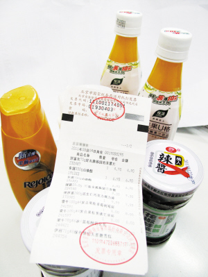 记者昨日在京客隆回龙观门店发现,该超市已经由原来的按项目内容开发票改为按照购物明细开具发票。例如,好丽友75g好友趣韩国泡菜薯片4.9元、东洲300g山楂酪6.9元、绿箭23.8g35粒金属瓶留兰香糖9.3元等均显示在发票联上。不过这种发票的打印时间比较长,记者购买的100多元商品竟然打印了两张发票。