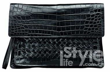 硬朗的线条和深沉的色彩,让这款手抓包看上去充满阳刚之气,压纹和编织效果为简洁的设计增加细节看点。