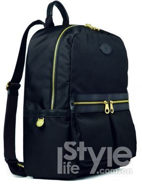 装饰有金色拉链的黑色双肩包,显得简洁而精致,搭配休闲西装绝不会觉得突兀,记得日剧中的男士上班族就经常如此搭配,干练中透着点学院气质。