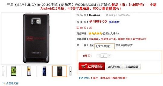 原价4999元的三星I9100手机的优惠介绍中出现了2次“购买减900”的优惠