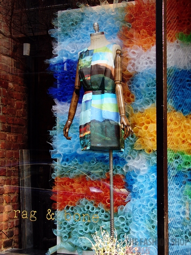 多么少女情怀的一个品牌,在纽约店铺的橱窗陈列因为展示模特、陈列道具都是金属质材,加之模特身上的衣服也是金属色系,从而营造出这种喧闹氛围,换种色系的服装或许能改变这种氛围。