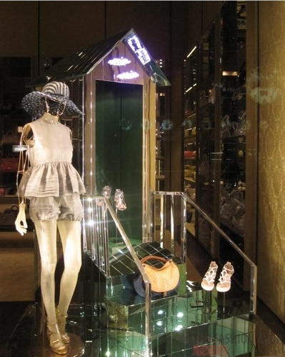 橱窗展示模特脚蹬超越LADY GAGA的鞋子的高度,震撼整条街!不妨在橱窗放置些夸大物件、超现实元素,这是吸人眼球的橱窗法则!