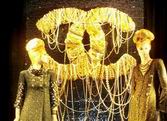 远看还以为是范思哲的橱窗,走近一看原来是CHANEL。狮子头图案也是CHANEL的一个品牌常用元素,不过常常见于配饰,比如耳环、胸针上,以及斜纹软呢外套上的纽扣也常以狮子头型、麦穗图案和山茶花等图案来雕刻装饰。2011年3月所拍到的这家店位于纽约一个高端商场,就是以狮子头为主陈列道具来展示橱窗。