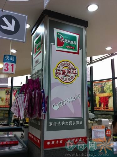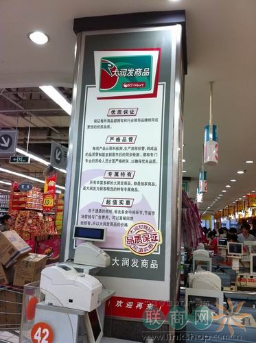 图为:大润发卖场内“RT-Mart”的温馨提示展示。