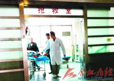 当日11:30许,记者赶到省立医院。在该院急诊抢救室,伤者汪先生被医护人员围着,正在进行紧张抢救。