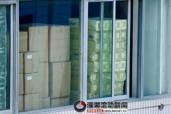 为了摸清仓库内的情况,记者来到1号厂房对面的仓库,在该厂房四楼往对面望。透过玻璃,4楼整层仓库都摆满了印有生命阳光(sunlife)标志的纸箱,在靠近仓库右侧的一个房间内,摆放着不少用来包装奶粉的塑料内托,一旁的地上还放着未使用的硬纸箱。