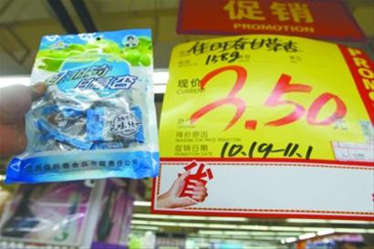 王女士曾花74.9元购买的长寿花金胚玉米油目前标价52.9元,价格牌上标着“促销”;龙升鲜米酥的透明包装上只有包装日期,没有生产日期和保质期;佳旺奇甘草杏标牌上标着重量每袋158克,而包装上的印着的重量只有135克。