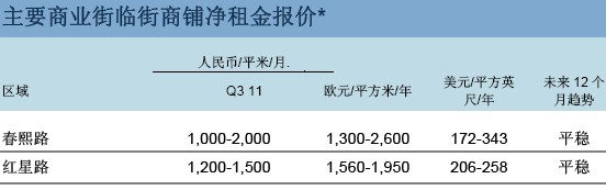 1、*租金报价是基于主要商业街黄金地段首层基于建筑面积的租金报价。