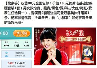 美团网团购冰洁基础款保暖套装,杨幂代言销售火爆