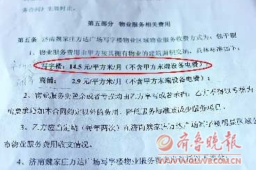 “真是没想到,好不容易盼来魏家庄万达广场写字楼交钥匙,可是高价物业费却让我们难以接受,每月每平方米14.5元的价格,济南其他地方还有比这儿更贵的吗?”市民甄力(化名)向本报反映,包括他在内的数十名魏家庄万达广场写字楼业主屡次就高价物业费的事和物业方面交涉,对方虽然增加了服务内容,却不愿意下调物业费价格。