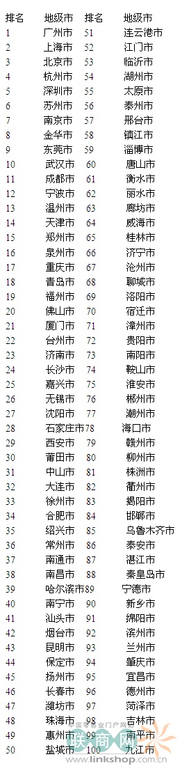 2011网商百强城市排行榜: