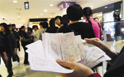记者在银泰百货地下一层女鞋区碰到一位黄女士,她正在一边试鞋,一边用手机记录着型号,手上还拿着一大把购物小票。“听说银泰这几天店庆,会有大活动,想趁这个机会多买点。我现在把小票开好,这样只要11月15日过来结算就好了。”黄女士还说,“以我这么多年逛银泰的经验看,正店庆的力度一定还会更大,到时候人一定很多,我现在先提前过来试穿预订,到时候就不用人挤人了。”记者清点了一下黄女士准备购买的商品总值在十几万元,包括8双女鞋、3件皮草、1枚钻戒、5套化妆品。
