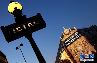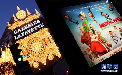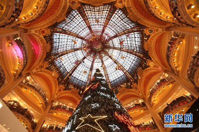 实拍巴黎老佛爷百货公司圣诞布置