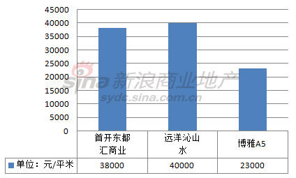据新浪商业地产数据监控室统计,12月预计入市项目均价为33667元/平米,较11月入市项目均价相比每平米下降1333元。具体来看,售价最高的为远洋沁山水底商,目前报价为40000元/平米。博瑞5A为12月入市售价最低项目,目前该项目售价为22200-23400元/平米。