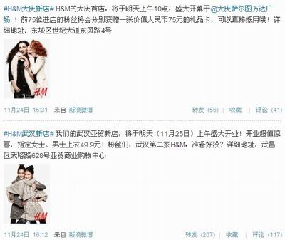 联商网快讯:H&M武汉第二店(武汉亚贸新店),于今日(25日)上午盛大开业。开业超值惊喜:指定女士、男士上衣49.9元!此外,H&M的大庆首店也于今日(25日)上午10点盛大开幕,落子于大庆萨尔图万达广场。