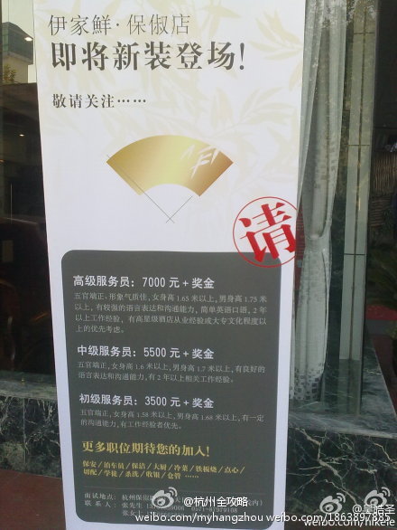 在线观看视频:杭州一餐厅7000元高薪招服务员
