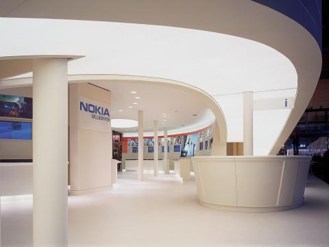 在电子产品中NOKIA做为手机产品的鳌头,在店面设计上也同样抢尽行业的风头,也没有哪一家手机专卖店,像NOKIA一样,“大胆”的将自己包装成一个巨型的客户体验中心,NOKIA店面设计趋向于体验性设计,这也于NOKIA手机的转变有着千丝万缕的联系。 (来源:中国商业展示网)