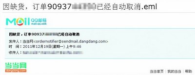 但是,盼着发货的网友第二天却大失所望。昨日上午9时45分左右,谭先生发现自己的订单从“配货中”变成了“被系统自动取消”。商品也已下架。当当网给他发来了一封电子邮件,给出的理由是“全面缺货”,并且称只有在发货后订单才算成立。