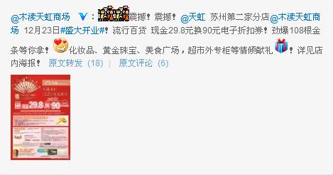 (图片来源:木渎天虹商场新浪官方微博)