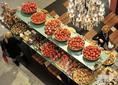 柏林,2011年12月22日 德国圣诞消费预计同比增长1.5% 。12月21日,在德国首都柏林的一家商场,消费者在选购圣诞饰品。此间媒体当日援引德国商业协会的观点报道说,尽管欧洲债务危机形势严峻,但德国人在危机气氛下消费热情不减,预计今年德国的圣诞节消费额将略高于去年。德国商业协会总干事施泰芬·根特表示,与去年同期相比,预计今年将增加1.5%。