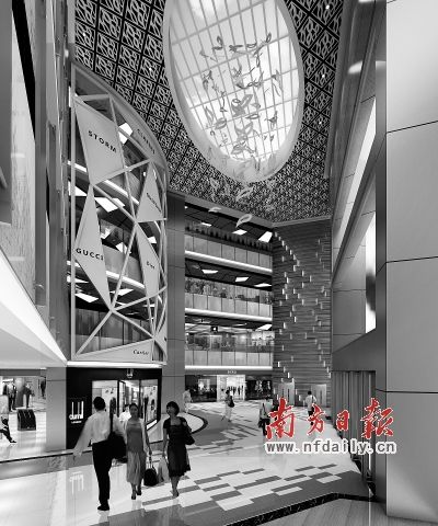 奥特莱斯的开张能否吸引并留住本地客流,仍是个未知数。图为奥特莱斯中庭效果图。资料图片