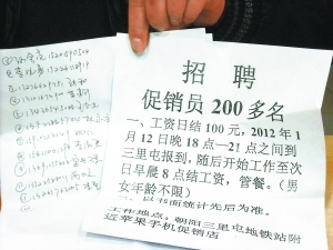 据《北京晚报》报道,记者联系了其中一位负责招聘的人士,他声称自己为苹果商店的工作人员,大量招聘排队人员是为了造成产品脱销的假象,只是一种促销手段而已。