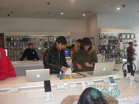 13日早上9点半一开门,北国电器北国电器总店和先天下店的苹果专柜就迎来了慕名而来的客流。北国电器iphone4s备货充足,16GB、32GB、64GB均有货源。在北国电器北国总店一楼苹果专柜早起开门就迎来了第一位顾客,整个上午电话不断,都是询问和预订。除此之外,笔者还在卖场内看到一位先生带着一双儿女前来选购,拿着iphone4来选购iphone4s。该家长说,孩子早就看上了,就等着买了。现在先买一台看看,如果各方面喜欢的话就再买一部给自己。