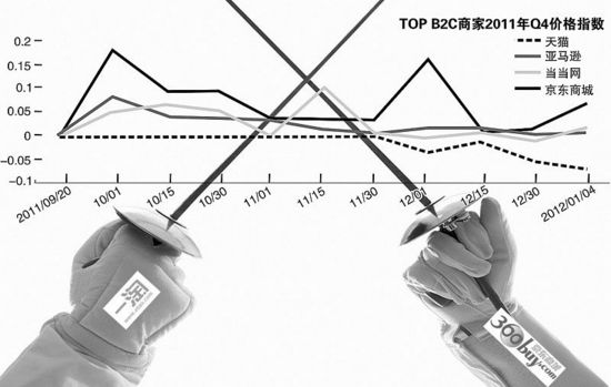 纠纷缘于一淘网1月31日发布的一份B2C商家2011年第四季度的价格监测数据报告。该项数据涉及当当网、京东商城、亚马逊、天猫四家B2C商家自2011年9月20日至2012年1月4日(即2011年第四季度)的价格指数。