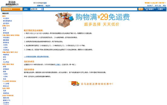 2月2日消息,继京东与新蛋后,又一B2C调整运费策略:亚马逊中国近日贴出公告,将免运费门槛提高至29元,此前卓越为全场免运费。