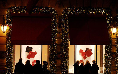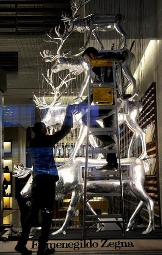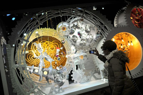 随着圣诞节的临近,纽约各大商铺纷纷精心布置节日橱窗,吸引顾客。