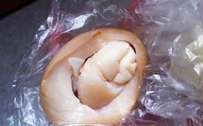 昨日早晨8时许,成都市民陈新像往常一样,在上池北街的7-11超市买早餐。3元钱,一个卤鸡蛋一个白菜肉包,可将卤蛋一口咬下去,原本松软的蛋黄不见了,取而代之的是一种肉色的、类似蛋白的物质。“简直不敢吃了!”陈新说,自己以前也没吃到过这样的,“不会是假鸡蛋吧?”陈新赶紧将半个蛋闲置一旁,连肉包也不敢再吃。