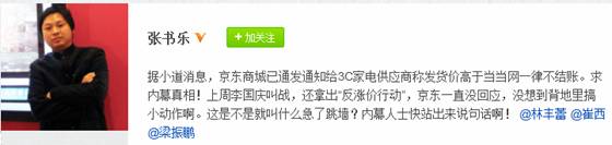 传京东通知供应商发货价若高当当一律不结款 日前,据微博爆料称:“据小道消息,京东商城已经发通知给3C家电供应商称发货价高于当当网一律不结账。”并称这是京东商城在暗中回应当当网的价格宣战。如果传言属实,那么这次京东商城确实是被当当网逼急了,从明刀明枪,转为地下暗战。从另一方面来说,京东商城是否真的打不起这场仗了呢?