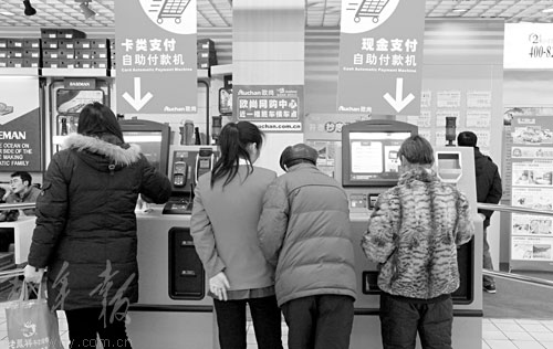 “如果商品数量不多,自助结账大约需要2到5分钟,比传统方式要久一些,加上顾客对新事物需要一个熟悉的过程,目前使用的人数确实不是很多。”据介绍,目前自动收银机日平均使用量达到500人次。