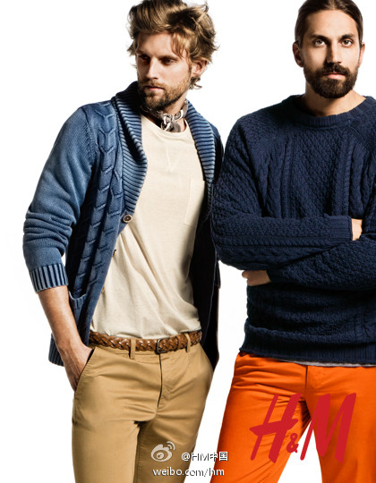 谁说亮色只适合女生,H&M一款橙色修身长裤可以让潮男们在这个春天更有型,搭配绞花针织上衣