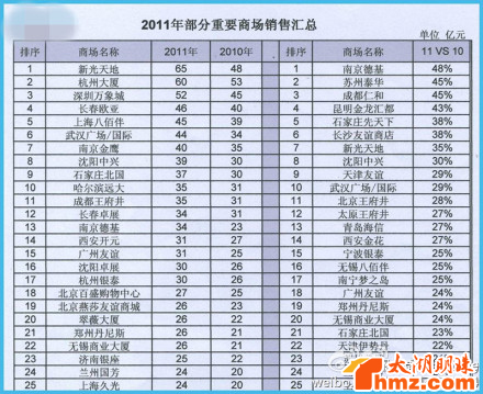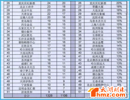 这里面好像大商体系的、新世界的、解百的、茂业的都没统计,不过已经不错了