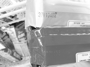 记者随意拿起一捆“泡吧小脆”,发现两包饼干的生产日期均为2011年4月2日,而饼干外包装上标明保质期为10个月。记者仔细翻了翻促销货架上的“泡吧小脆”,发现绝大部分的生产日期都是2011年4月2日,甚至还有两包2011年3月23日生产的,过期近两个月。货架后部不显眼的地方,则有一部分是2011年7月生产的。