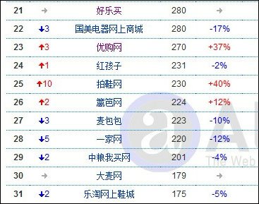 综合B2C的行业排名似乎已尘埃落定,但在垂直领域B2C领域,市场则可能在瞬息间发生。Alexa数据排名显示,百丽国际控股运营的优购网上鞋城连续两周流量和用户覆盖量上涨30%,排名跃升行业第二。不过,目前乐淘方面并未予以回应。