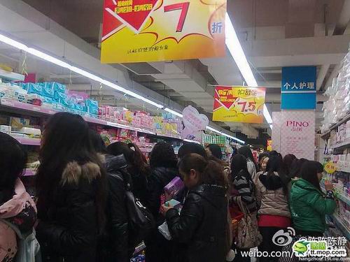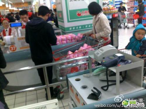 这位大姐,就算是打折你也太夸张了吧,你家有多少个女人呐,你把这两年的卫生巾都先囤了吗???给其他姐妹留点货吧,超市补货也要时间呐。