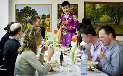 由两名荷兰企业家同朝方合作开办的这家餐厅名字为“阿姆斯特丹平壤海棠花餐馆”。虽然朝鲜在亚洲经营着数十家餐馆,但这还是第一次在欧洲开餐馆。