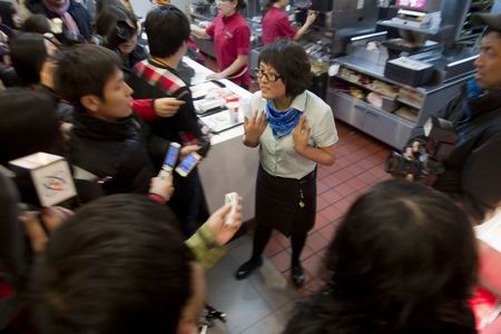 图为315晚会后大量媒体涌向麦当劳三里屯店。