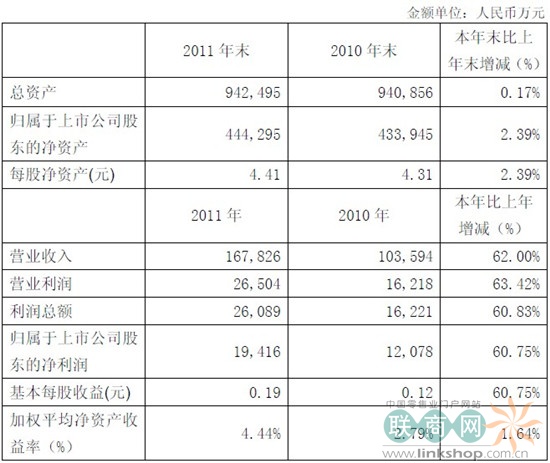 中国国贸营业收入、利润总额及净利润同比均有较大幅度的增长,主要是2010年8 月份以后陆续投入使用的国贸三期写字楼、商城出租率及租金水平稳步提升,以及国贸大酒店客房及餐饮收入增加所致。 (联商网 顾仙玉 转载请注明出处!) 点击查看报告全文:附件:中国国贸2011年度业绩快报.pdf