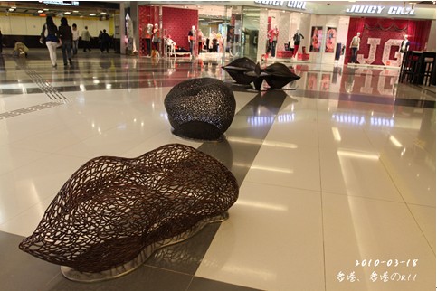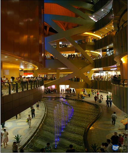 2. 太古汇长条线性布局,正中是个大厅,沿线有几个小厅,弧形天顶给人以优美、现代时尚的感觉;卖场色调为暖色系列,灯光布置巧妙,整体感觉品味而不奢华。。。